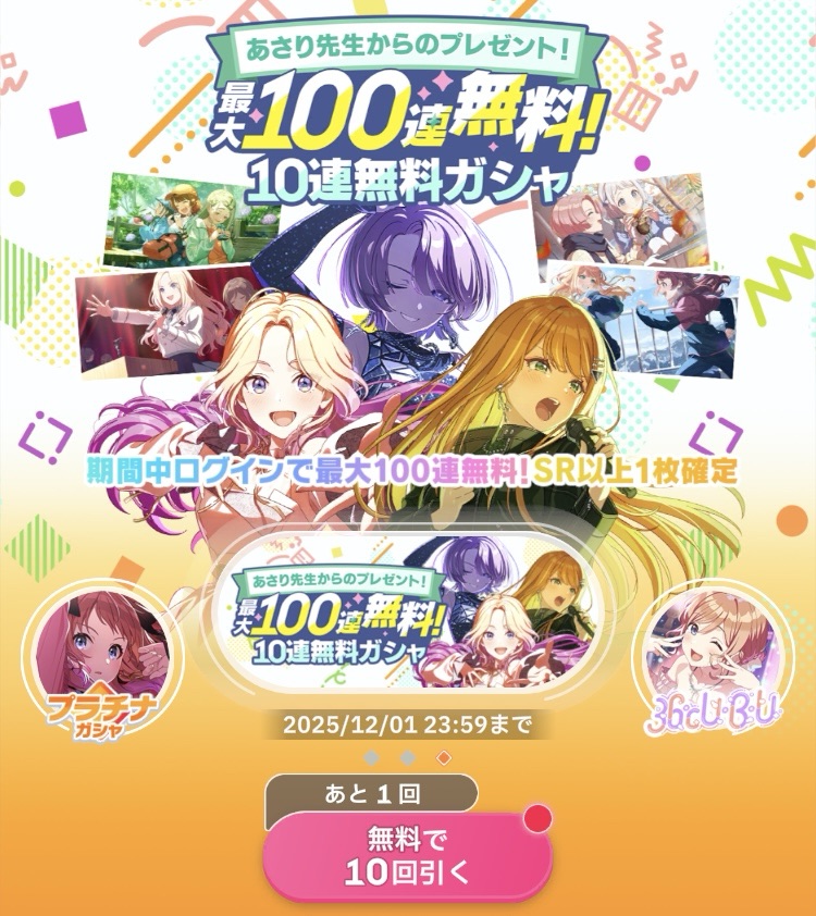 よーし電車で学マスの無料10連引いちゃうぞ~!