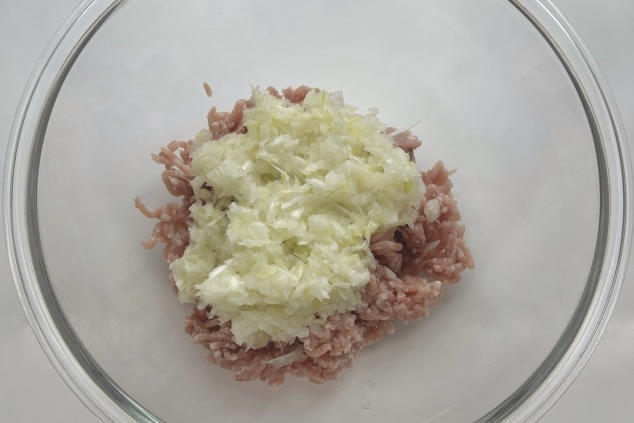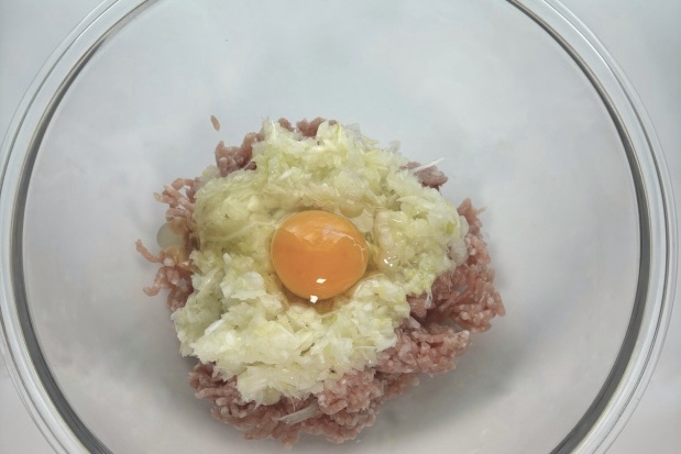 ひき肉を巨大コンタクトレンズの上に置きます。