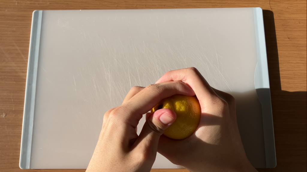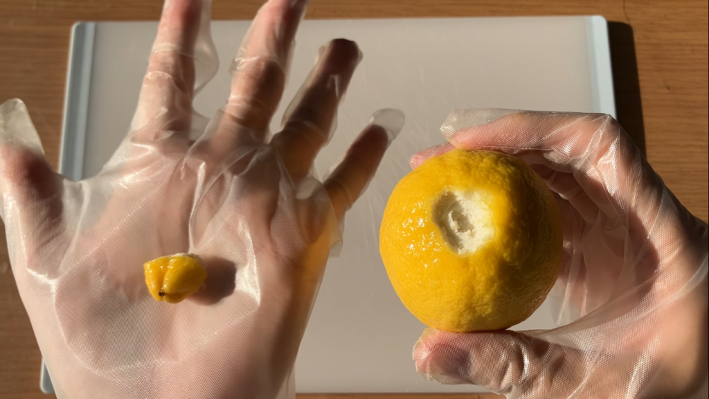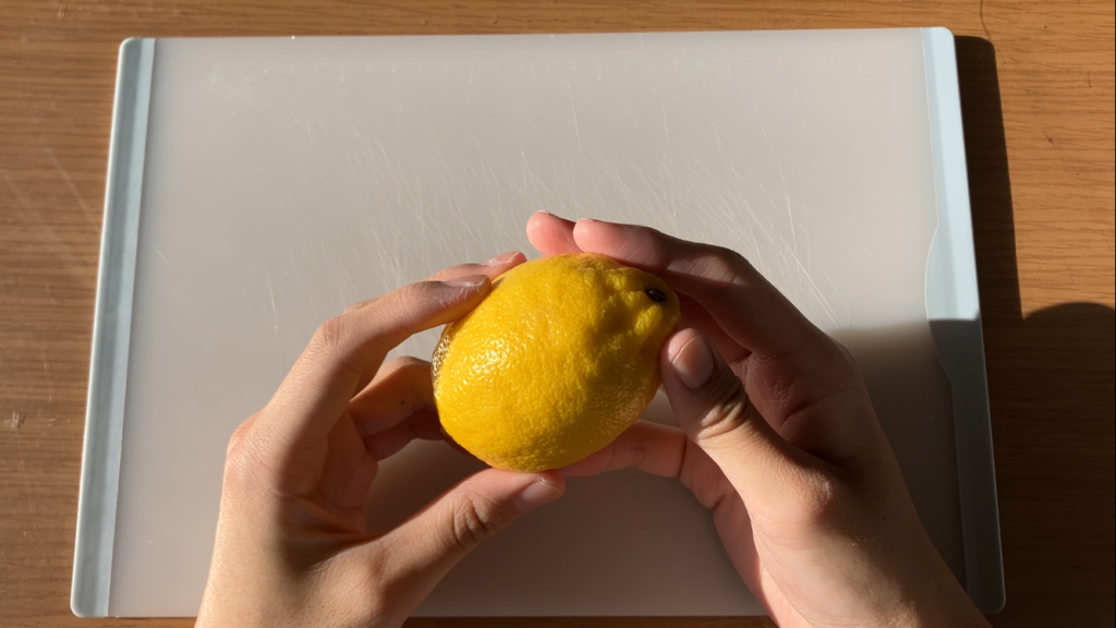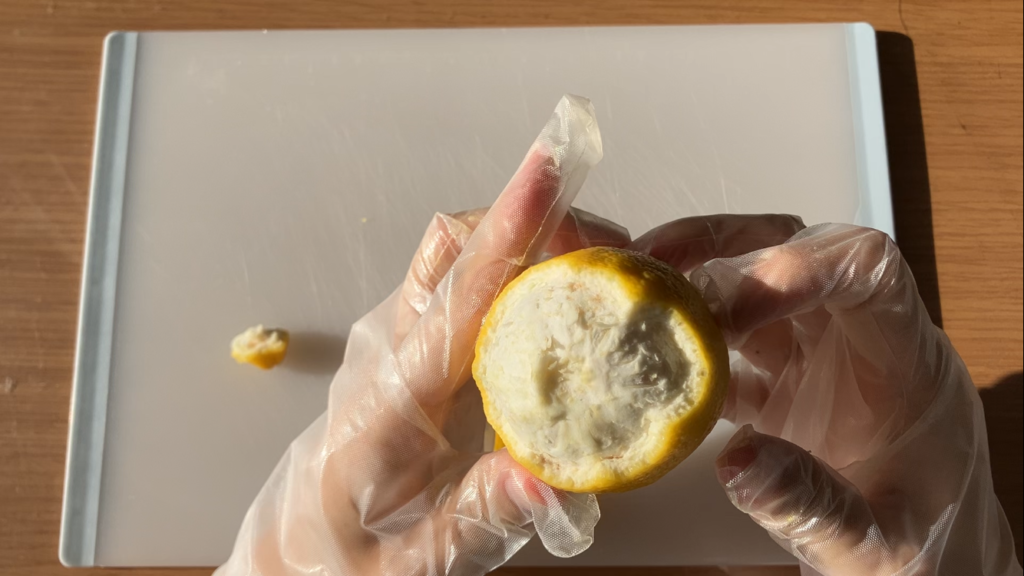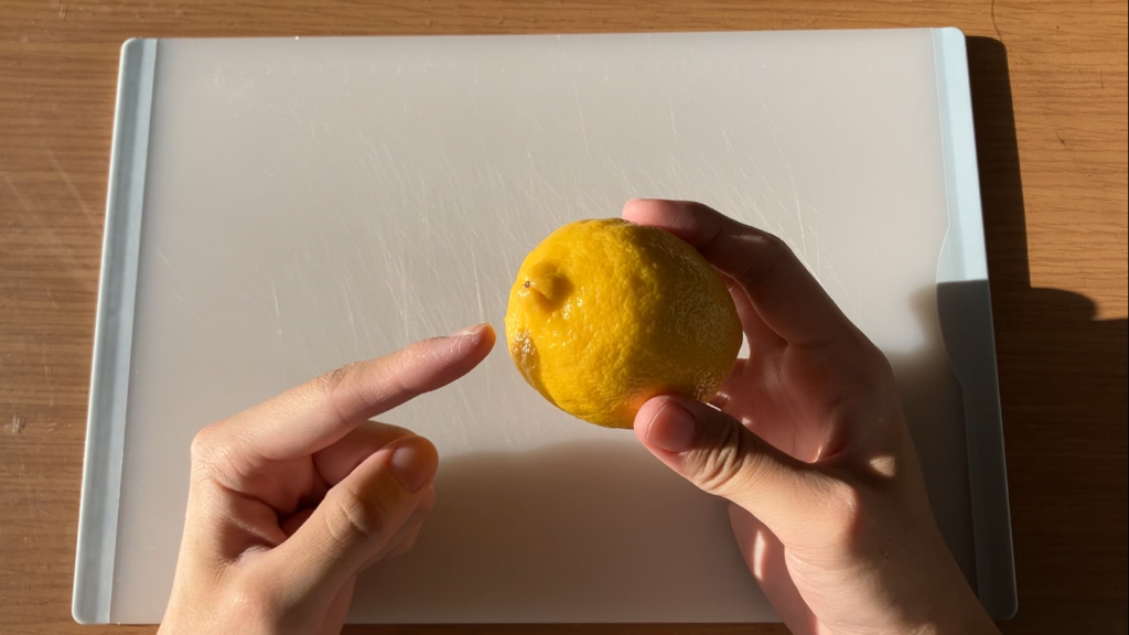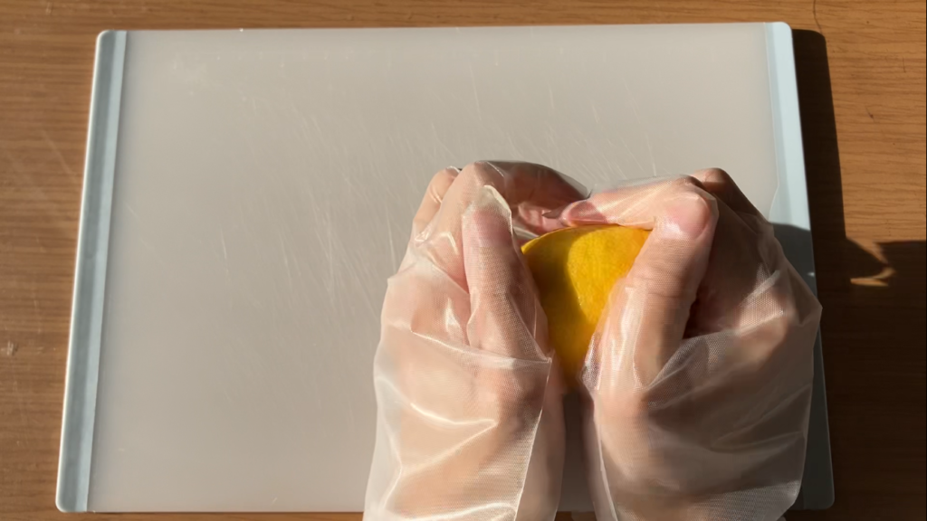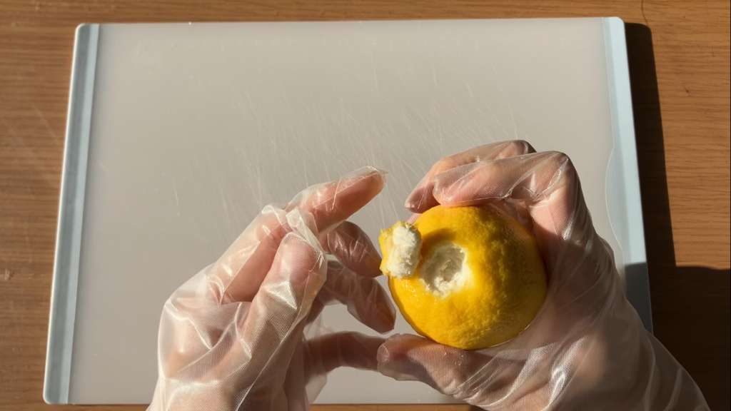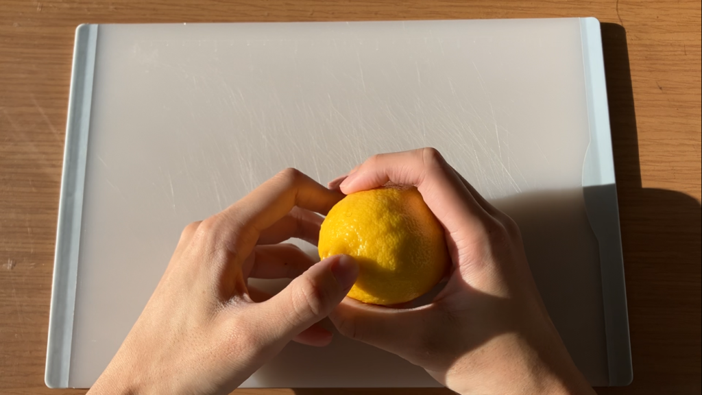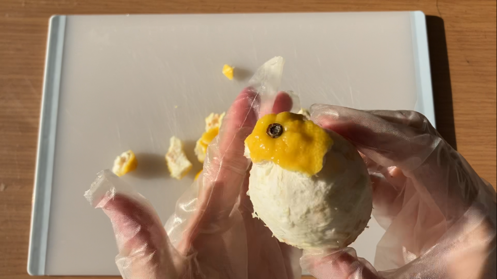 檸檬を丁寧に剥きます
