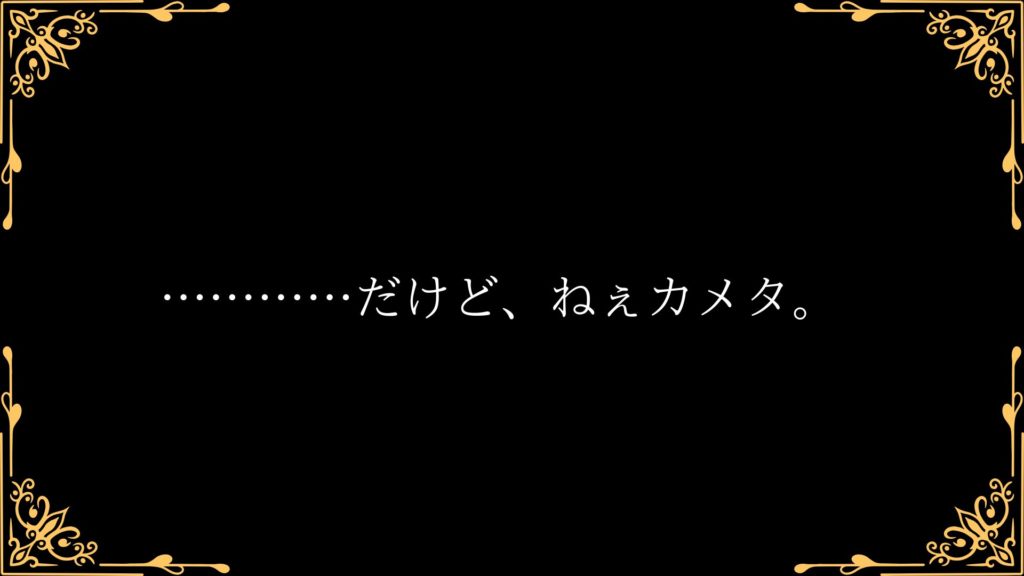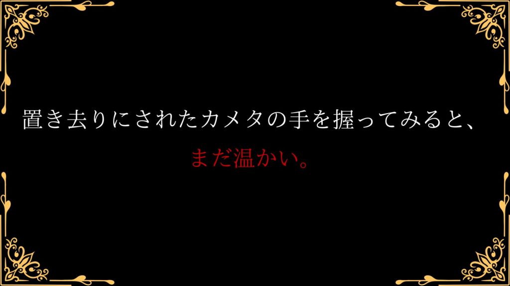 でカメタが腕切って逃げるじゃん?そしたらカメコが残された手見て……
