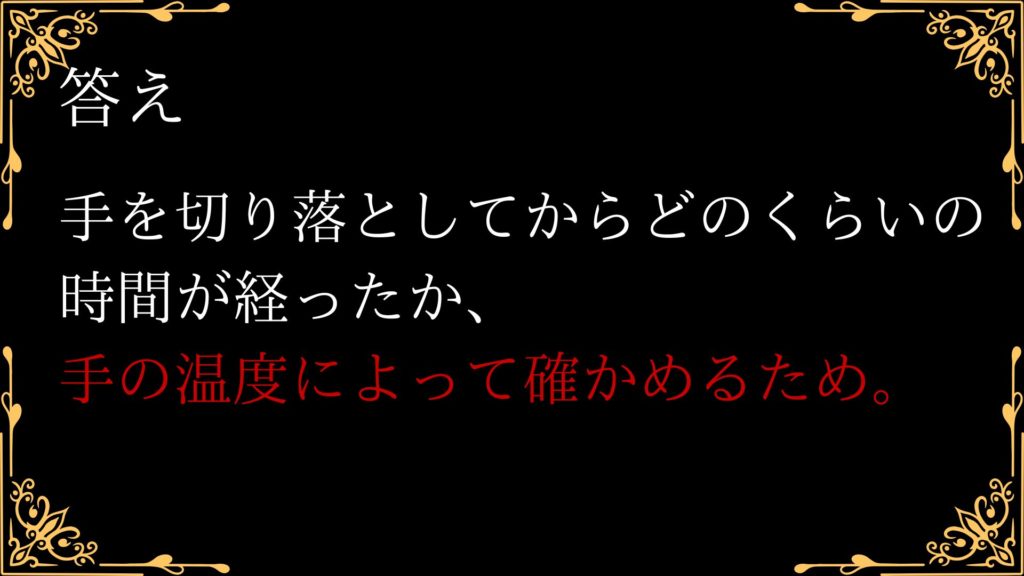 ※ウミガメのスープのゲームシステム上、一度答えを知ってしまうともうその問題では遊べなくなってしまうので、先に自分で問題を解きたい方は下部のリンクからどうぞ。