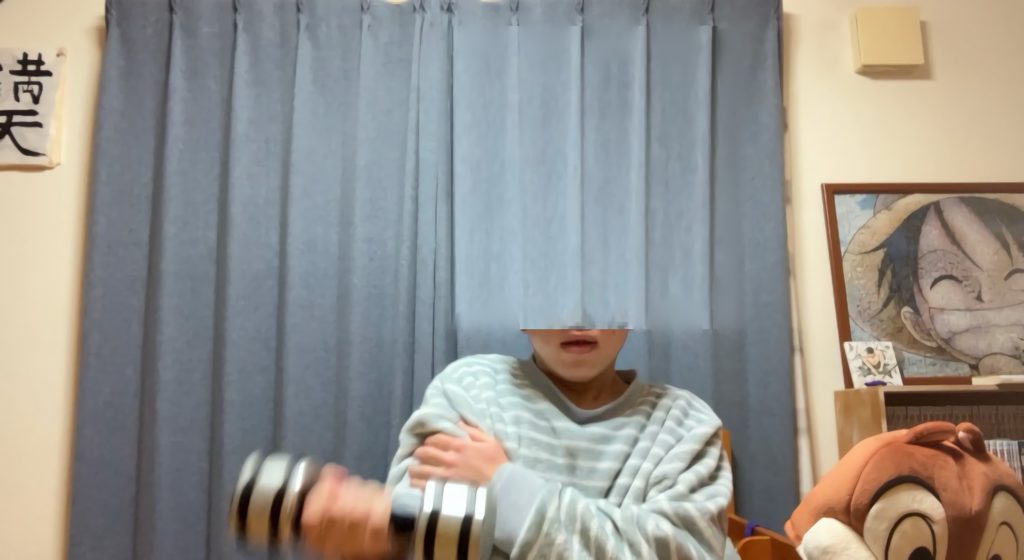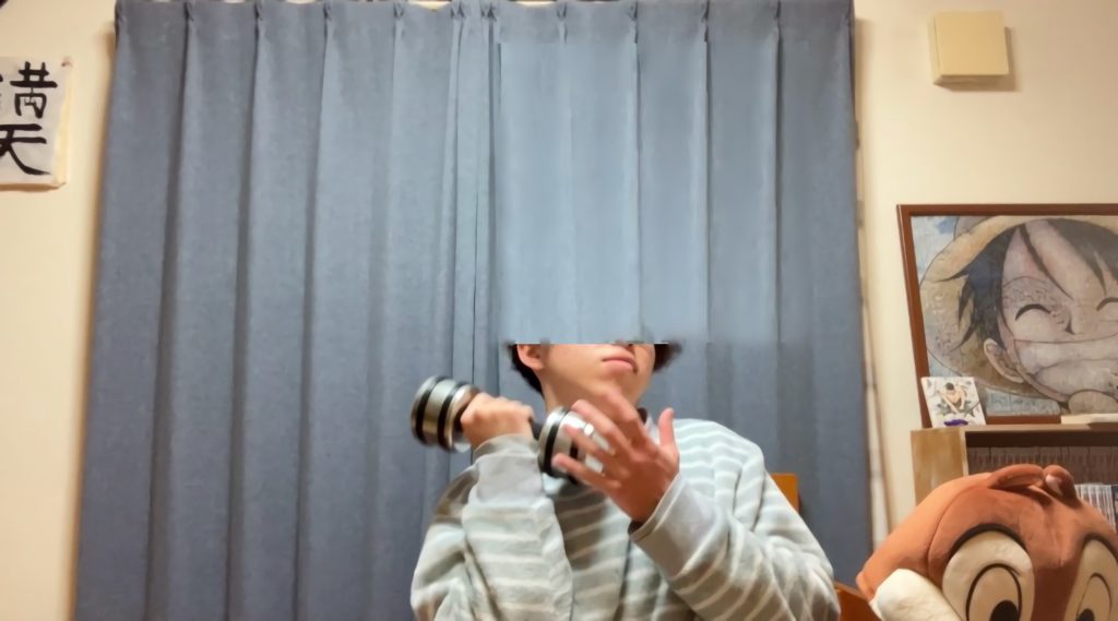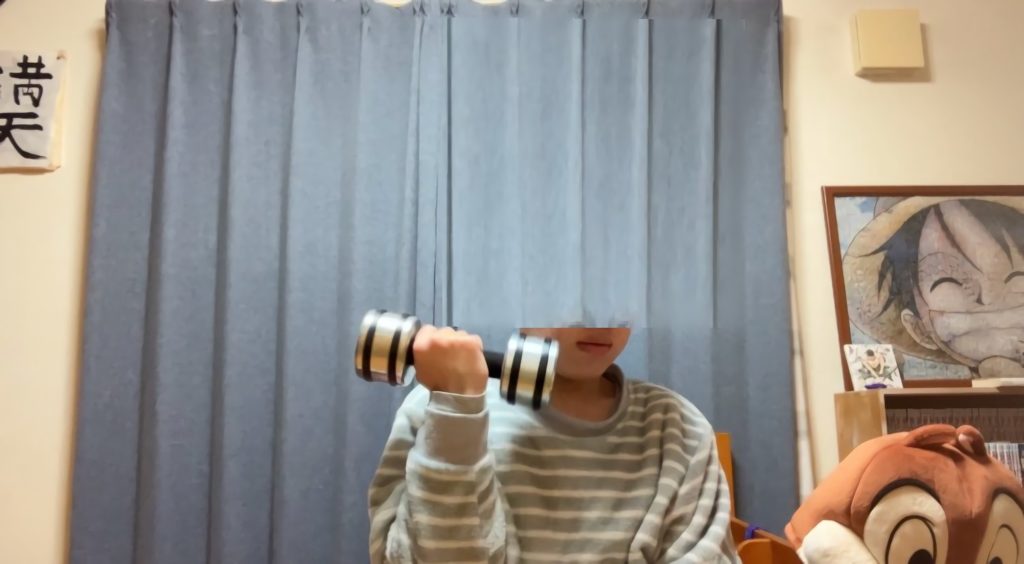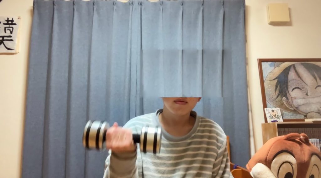 今回は「5kgのダンベルを何回持ち上げられるか」でパワーを測定します。