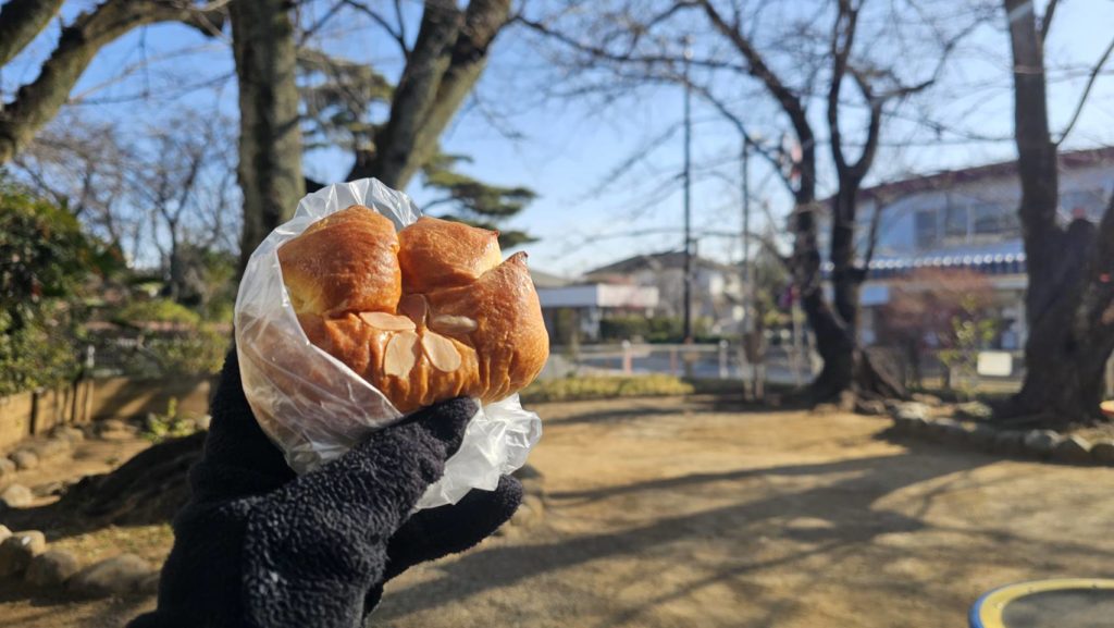 最後はロータリー裏の公園で先ほど買ったパンを食べて終わります。