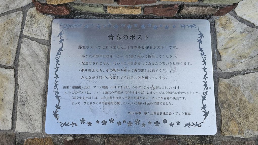 まず駅を出ると、耳をすませばを模した青春のポストが出てきます。