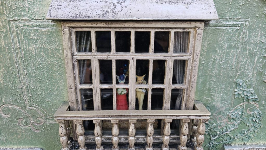 窓の中にはバロンと夫人がいます。これを見ると【猫の恩返し】のバロンの家を思い出します。