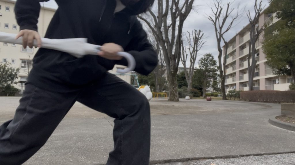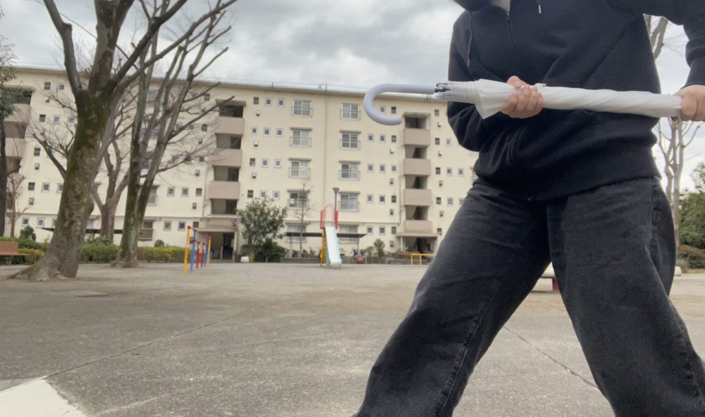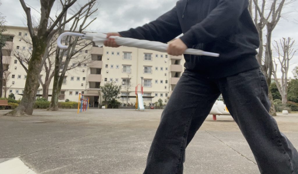 完璧すぎるまでの傘ガード、傘トリガー、傘ソード、傘……槍?……。これには昔の武将ですら恐れおののき、額を地面にこすりつけ私に対して必死に許しを乞うでしょうね!私が天下じゃけぇ……