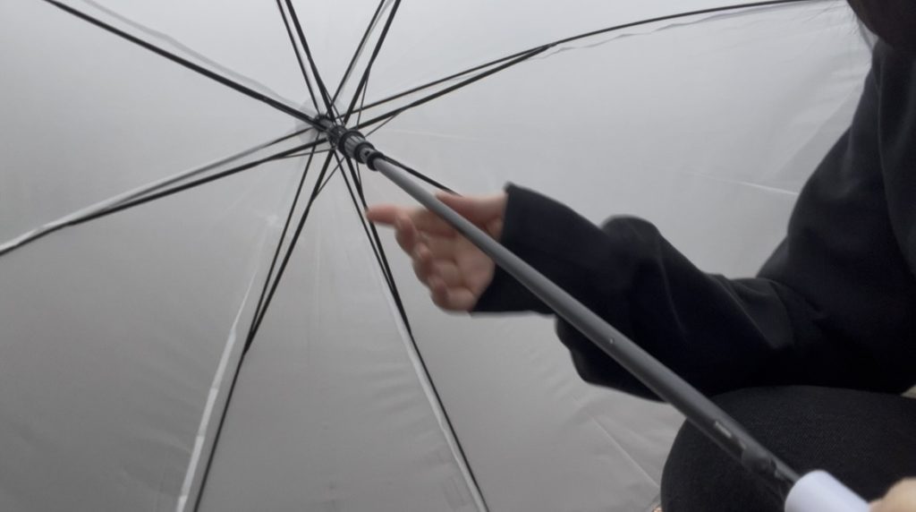 因みにですが、この変形型武器、驚くべきことに雨を凌ぐこともできます。