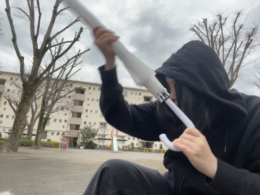 早速ビニール傘を手に入れたので服装を超能力者っぽくしていきます!