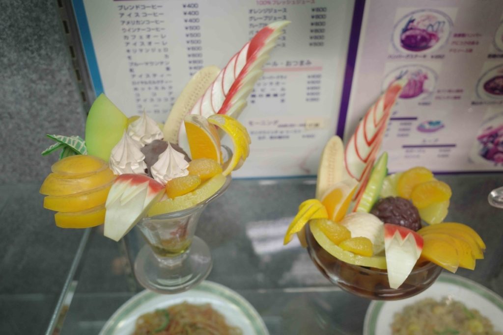 こういう、パフェやナポリタンなんかの食品サンプルがガラスケースに並ぶお店の事だ(中野のサウナに併設の「純喫茶 ノーベル」にて。2020年)。