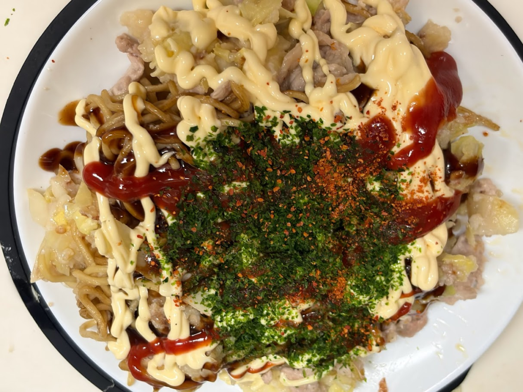 うまかった。うまけりゃええんですわ。ソースとマヨネーズの調和、ケチャップの酸味、あおさと唐辛子の引き立てによりおいしい。旬のキャベツも甘い。